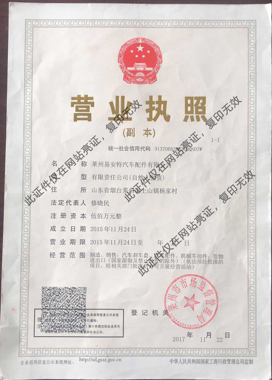 CopyRight ? 版權所有: 萊州易安特汽車配件有限公司??備案號:魯ICP備20025119號-1? 營業執照